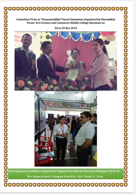 | 13 | Miss. Jadhav K.N.,Miss. Ghadage P.H.,Miss. Khambalkar.P.N.,Miss. Sawant R.A. | research sensitization scheme | receive 10,000/-Rs research grant from shivaji university,kolhapur under research sensitization scheme for college students 2018-19 | View |