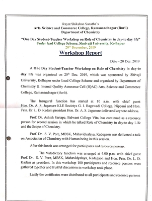 | 54 | 20/12/2019 | One Day Student-Teacher Workshop on Role of Chemistry in day-to day life” Under lead College Schem | View Report |