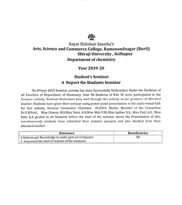 Report of Students Seminar (B.Sc.III) 6 Sept 2019 |