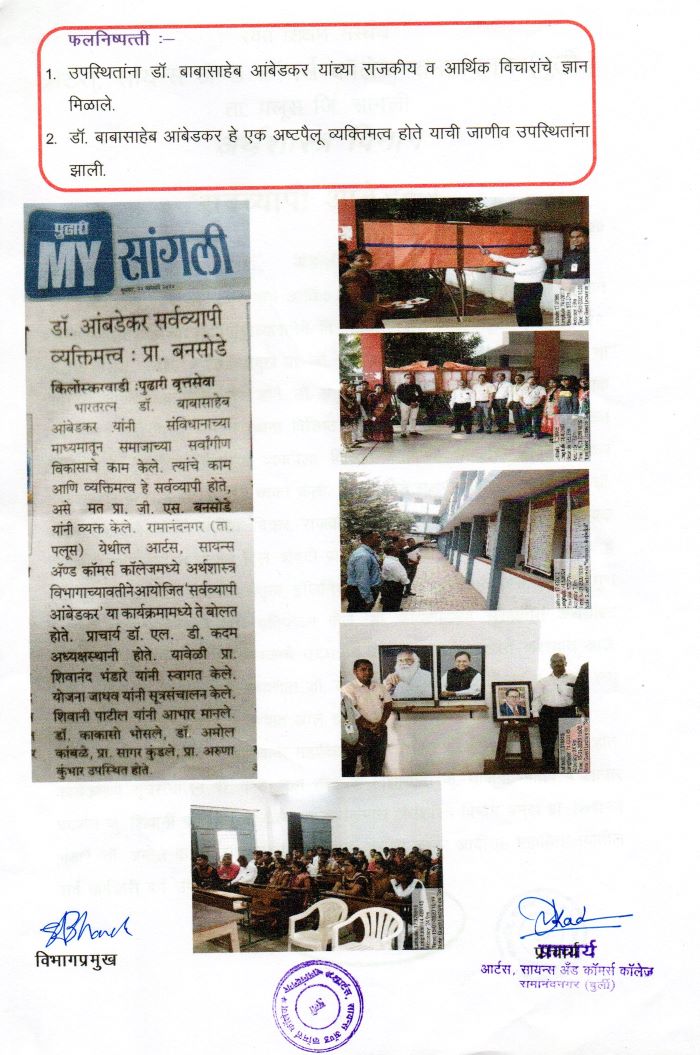| 35 | Mr. S. R. Kundle | Agricultural Thoughts of Dr. Babasaheb Ambedkar | Research paper published in AJANTA Publication volume IX, isssue II, April-June 2020, Impact Factor 6.399 |