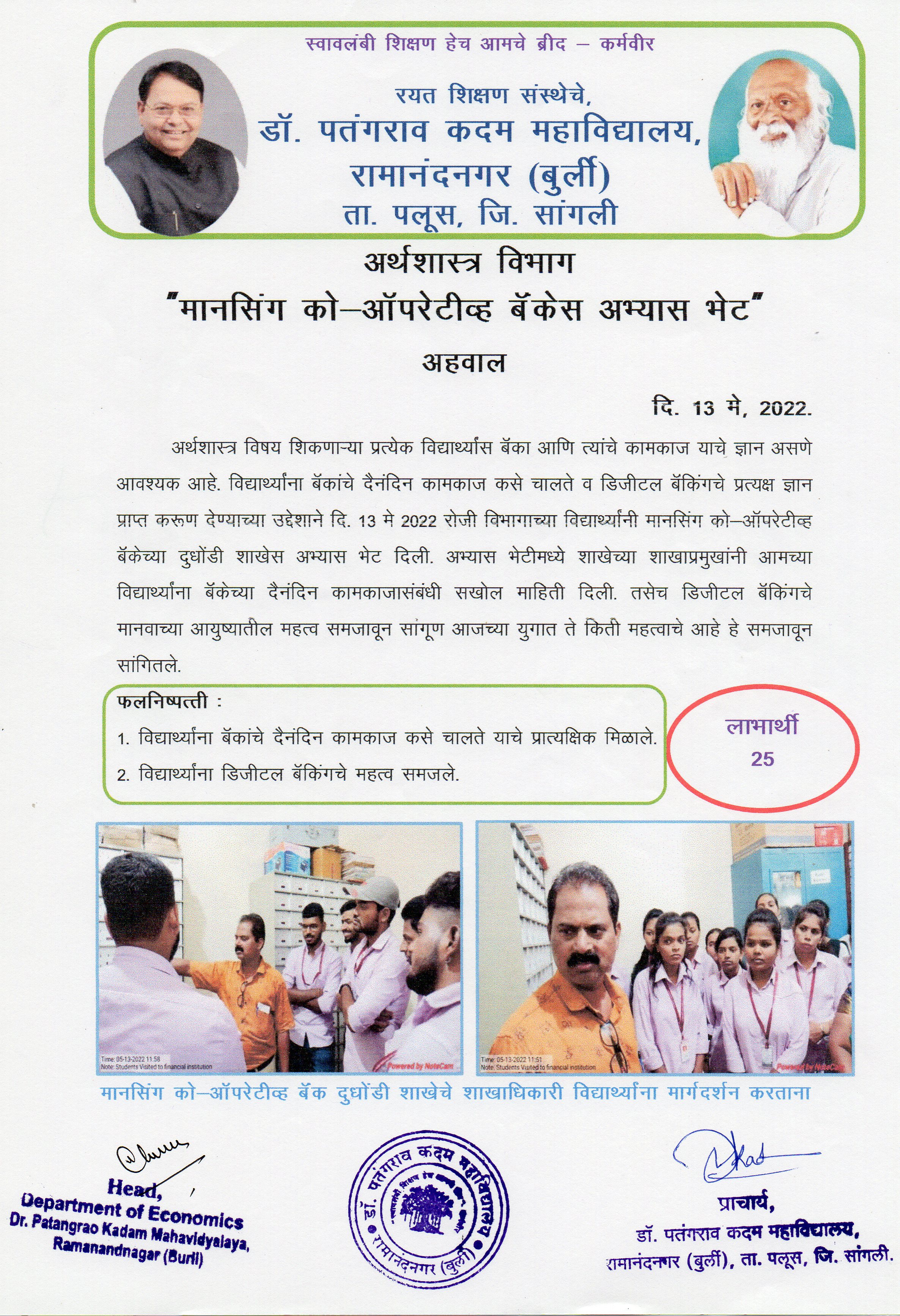| 25 | 13/05/2022 | Study visit to Mansing Co-operative Bank Dudhondi | View Report |