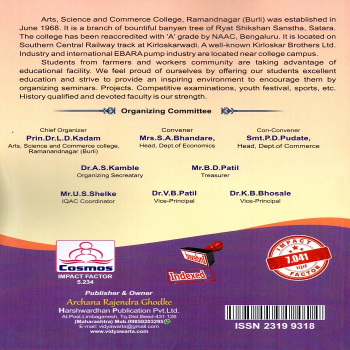 | 28 | Prof. Dr. (Mrs.) P. B. Patil | Growth prospective of Indian Economy: A study on MSME’s in India | Research paper published in ISSN Journal Vidyavarta, Issue 45 Vol. 08, ISSN 2319-9318 |