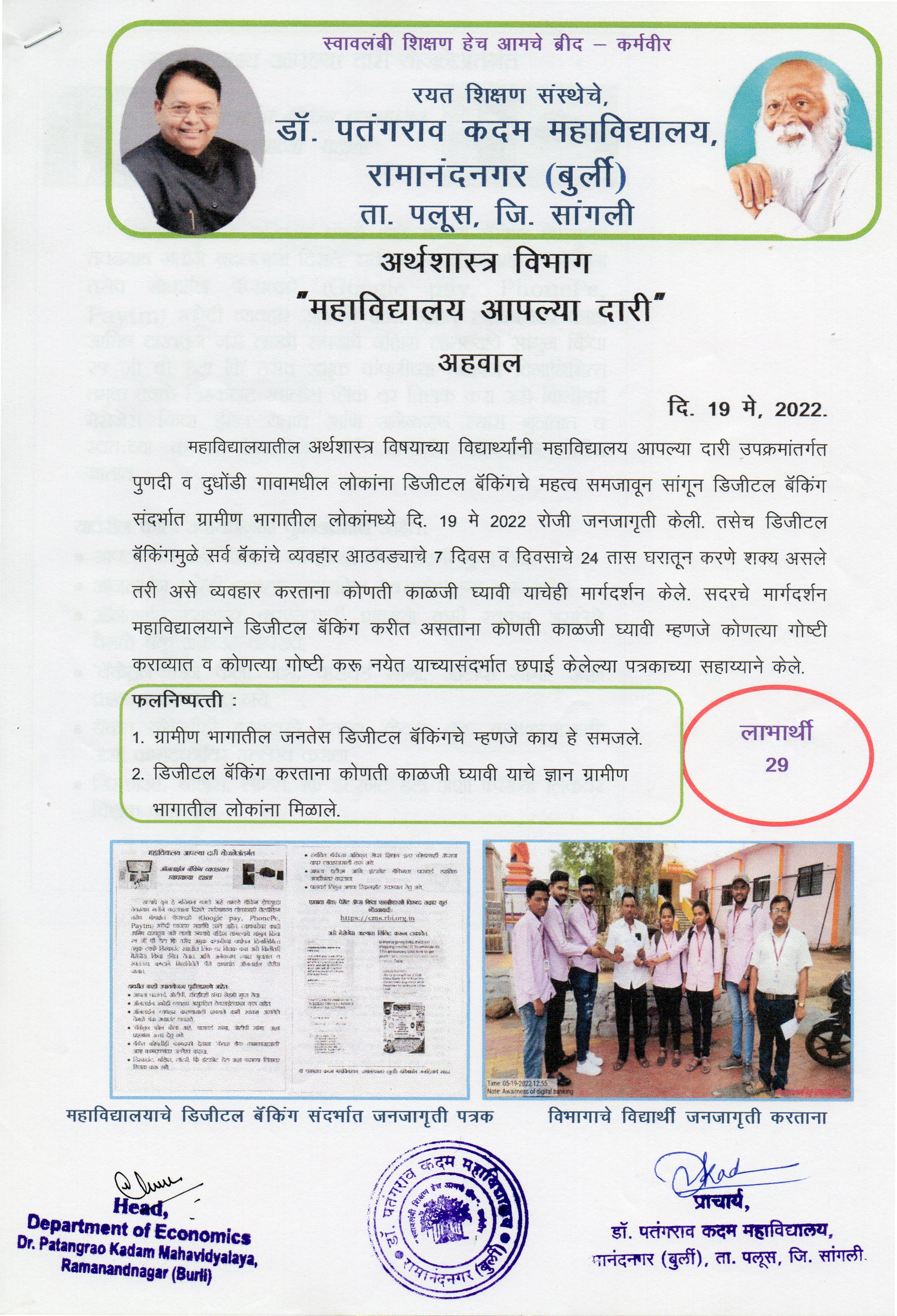| 22 | 19/05/2022 | Extension Activity "Mahavidyalaya Aapalya Dari" | View Report |