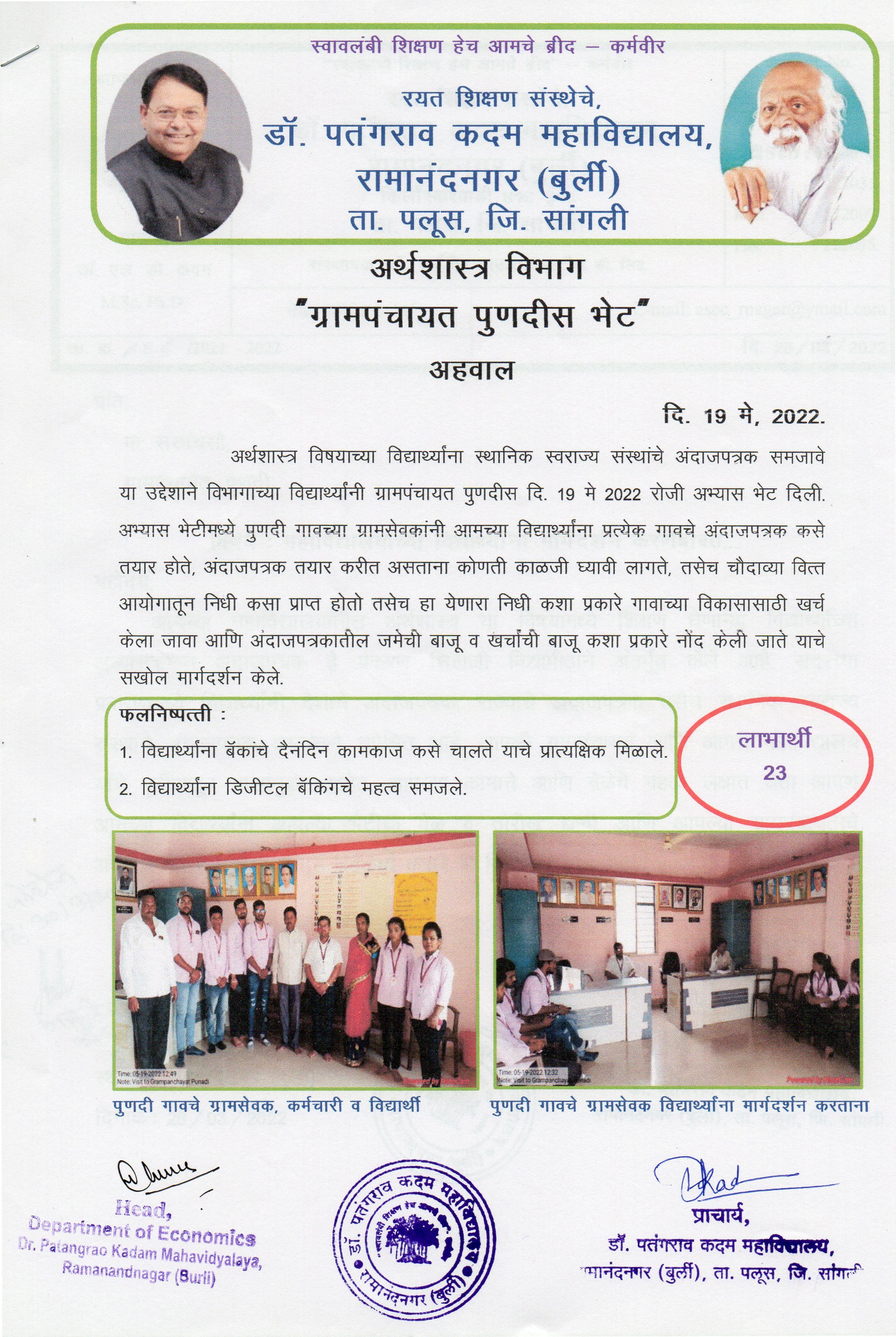 | 23 | 19/05/2022 | Visit to Grampanchayat Punadi for getting knowledge of Grampanchayat Budget | View Report |