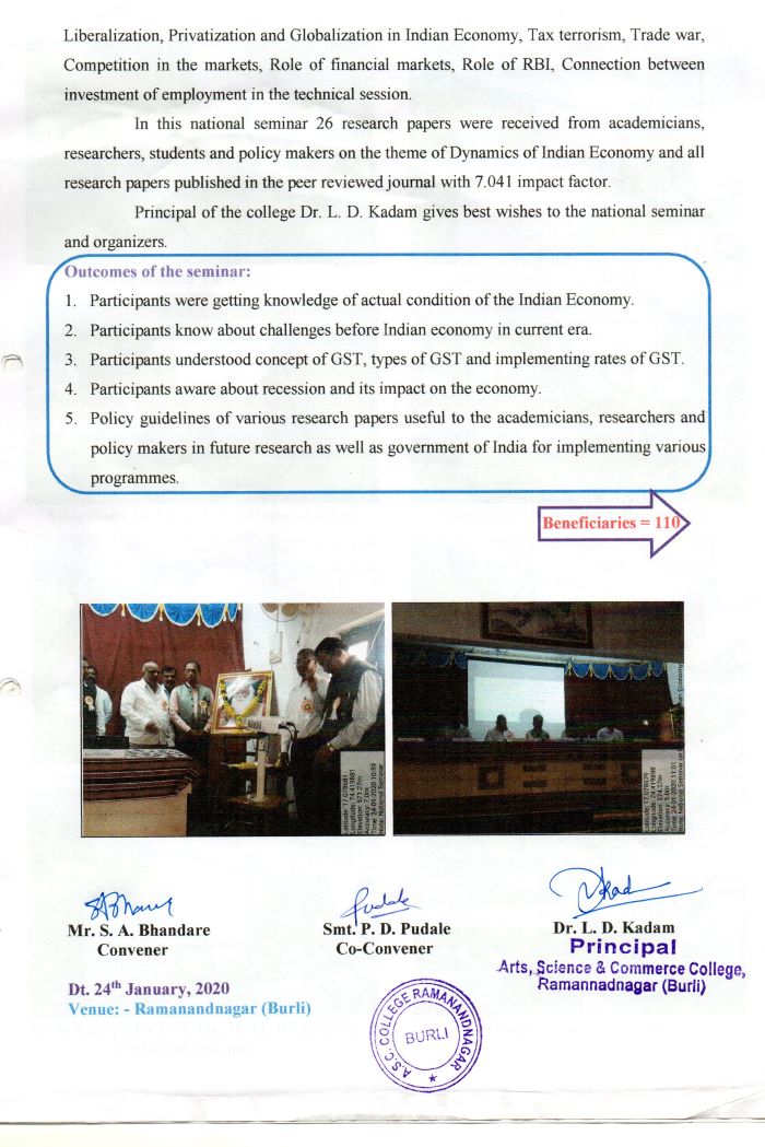 Proceeding of National Seminar "Dynamics of Indian Economy" which is organized on 24 /01 /2020 |