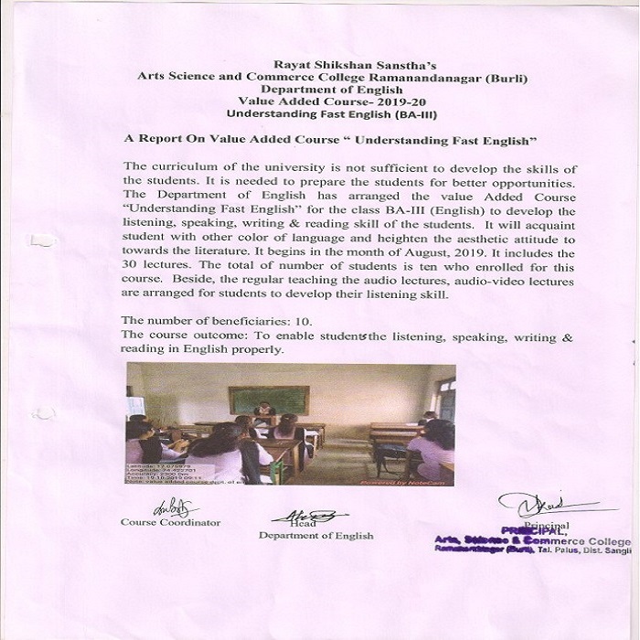 | 81 | 28/08/2019 | Value Added Course " Understanding Fast English" | View Report |