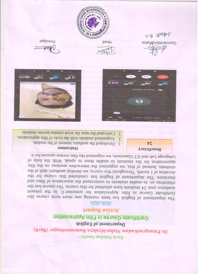 | 62 | 12/07/2021 | Certificate Course in Film Appreciation | View Report |