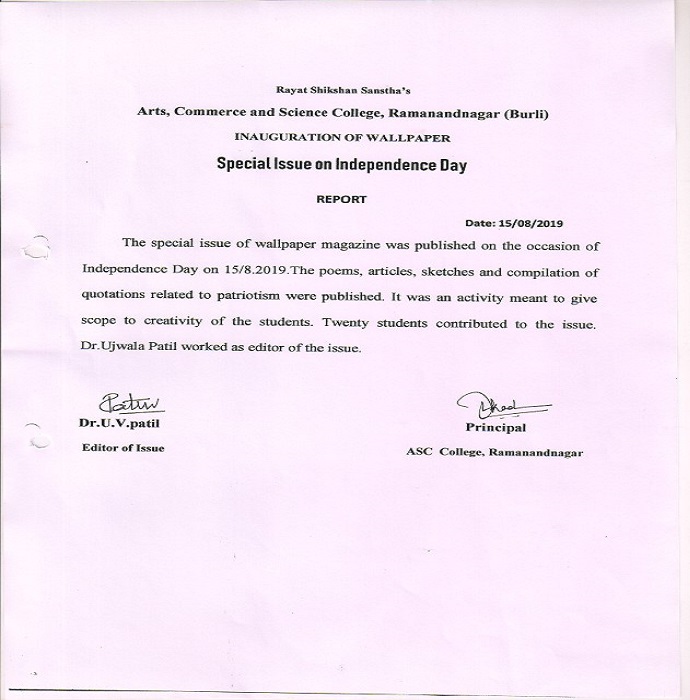 | 22 | Inauguration of Wallpaper: Special Issue on Independence Day | 15/08/2019 |