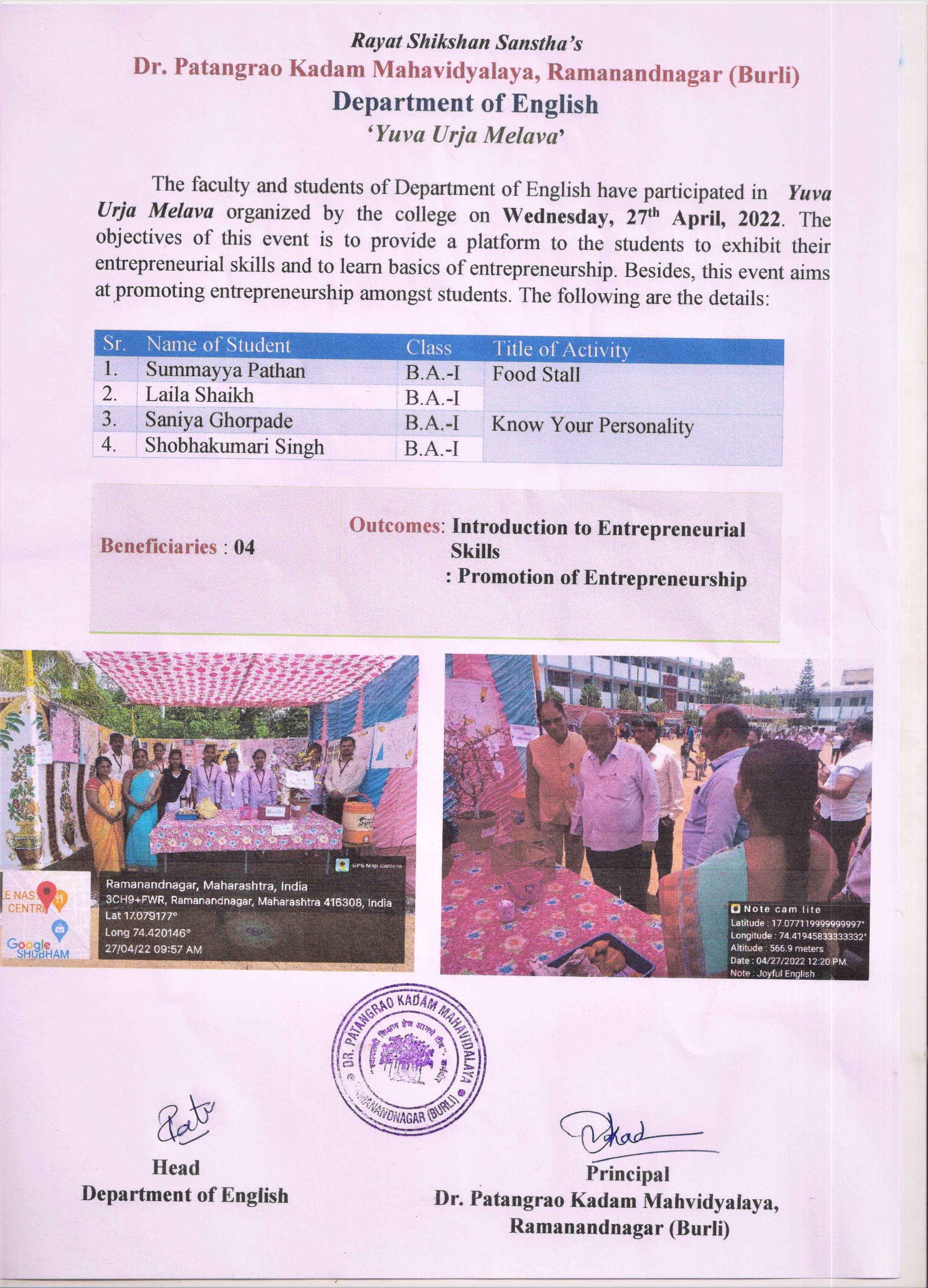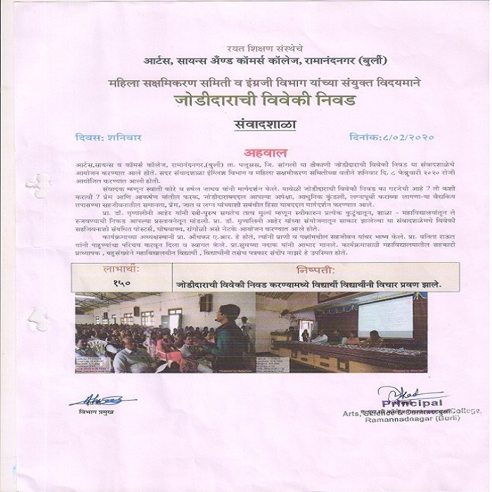 | 50 | 07/04/2022 | One Day Workshop on Oratory Skills under Lead College Scheme of Shivaji University , Kolhapur | View Report |