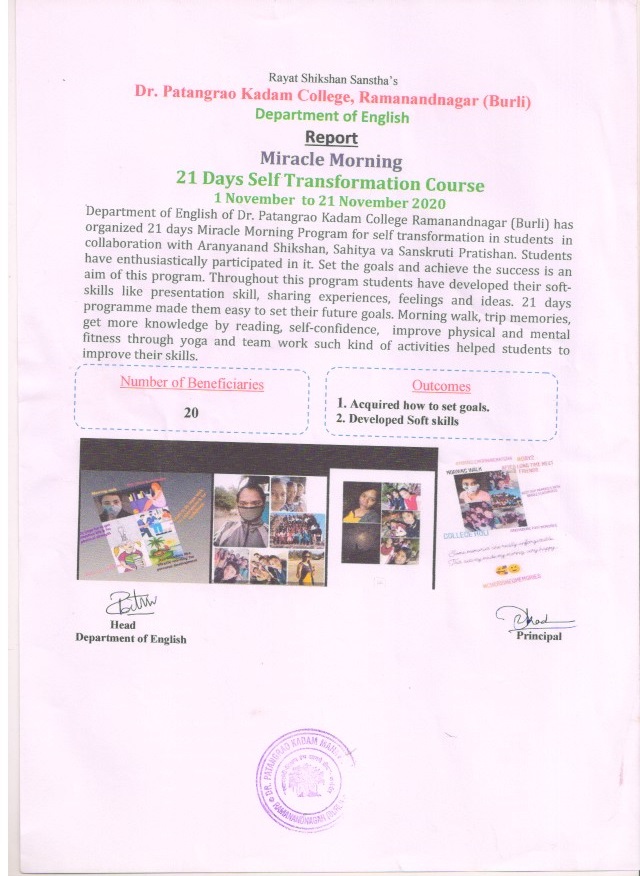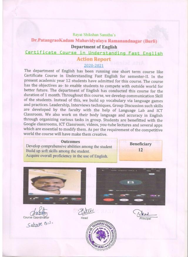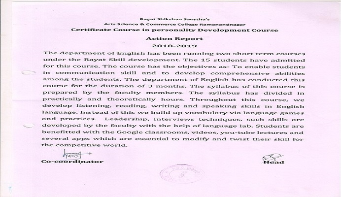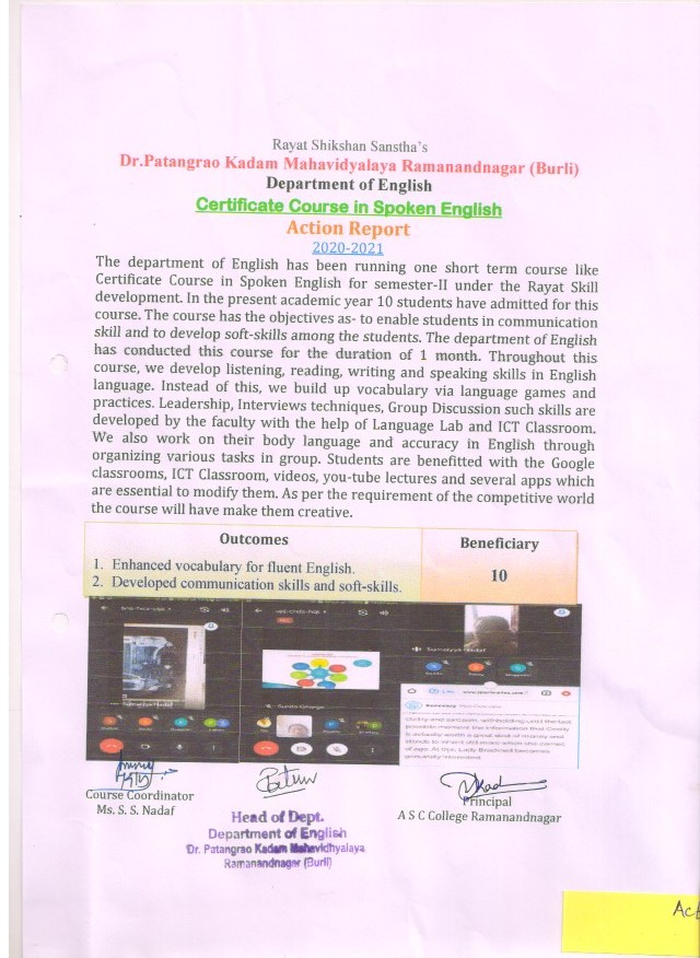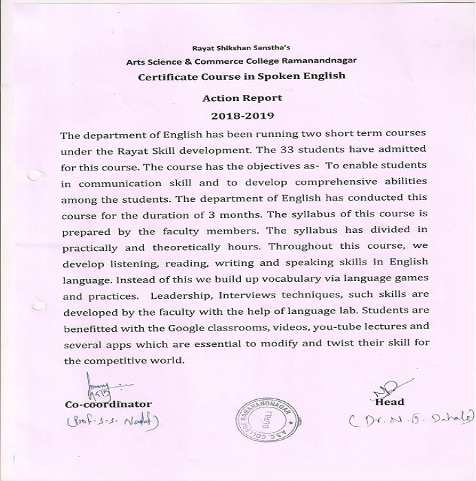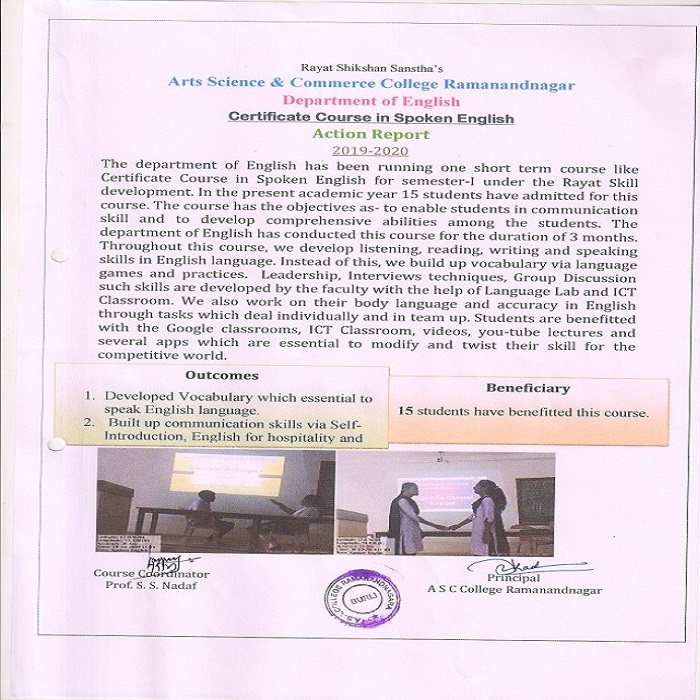| 60 | 31/07/2021 | certificate Course in Spoken English | View Report |