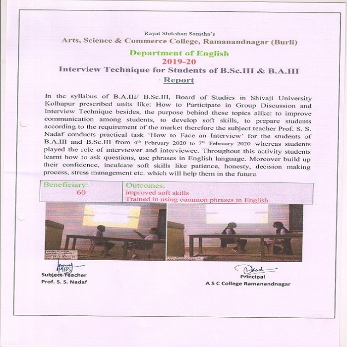 | 14 | Interview Technique for Students of B.A. III & B.Sc. III | 4/02/2020 -7/02/2020 |