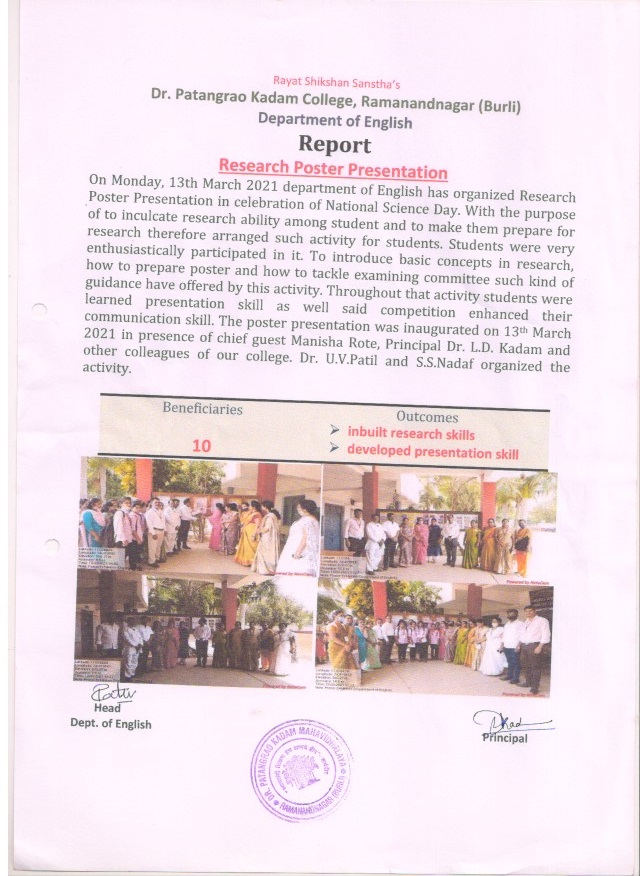 | 66 | 13/03/2021 | Research poster Presentation | View Report |