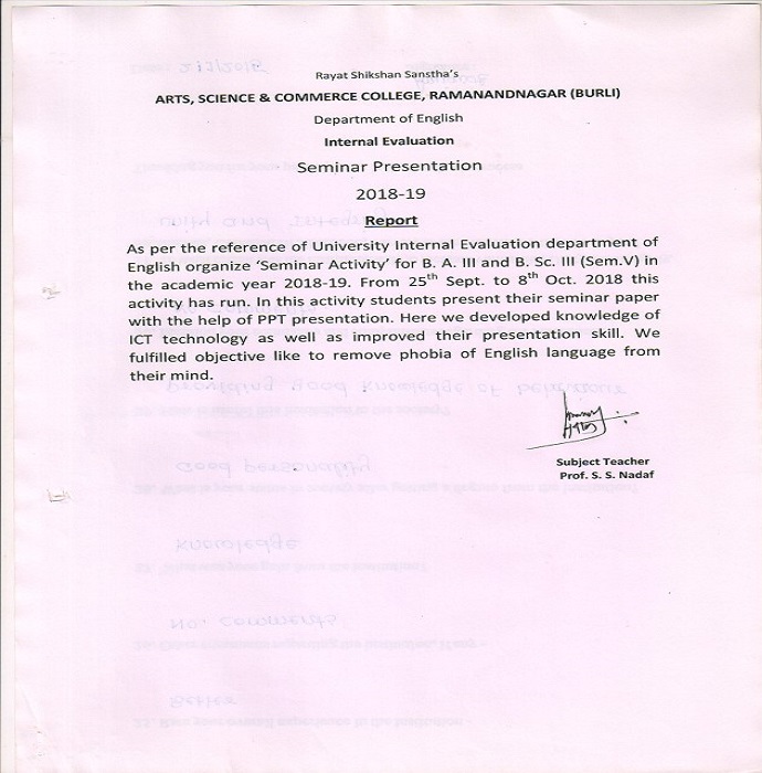 | 27 | Seminar PPT Presentation of B.A. III & B.Sc. III Students | 25/09/2018-8/10/2018 |