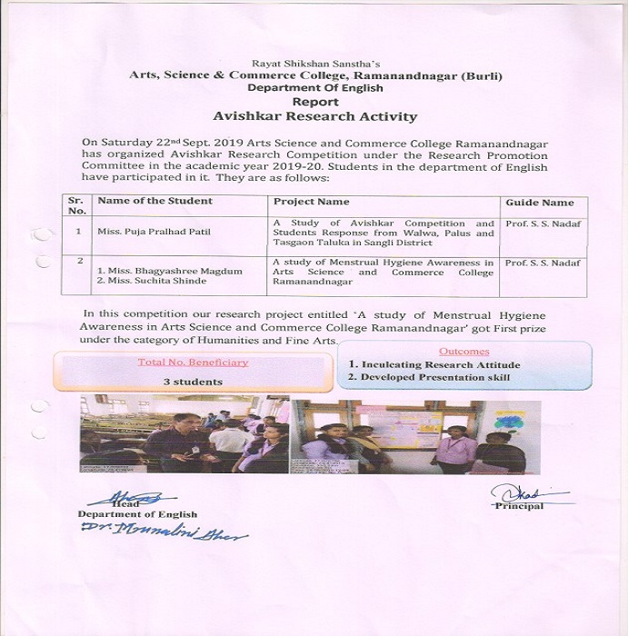 | 78 | 22/09/2019 | Avishkar Research Activity | View Report |