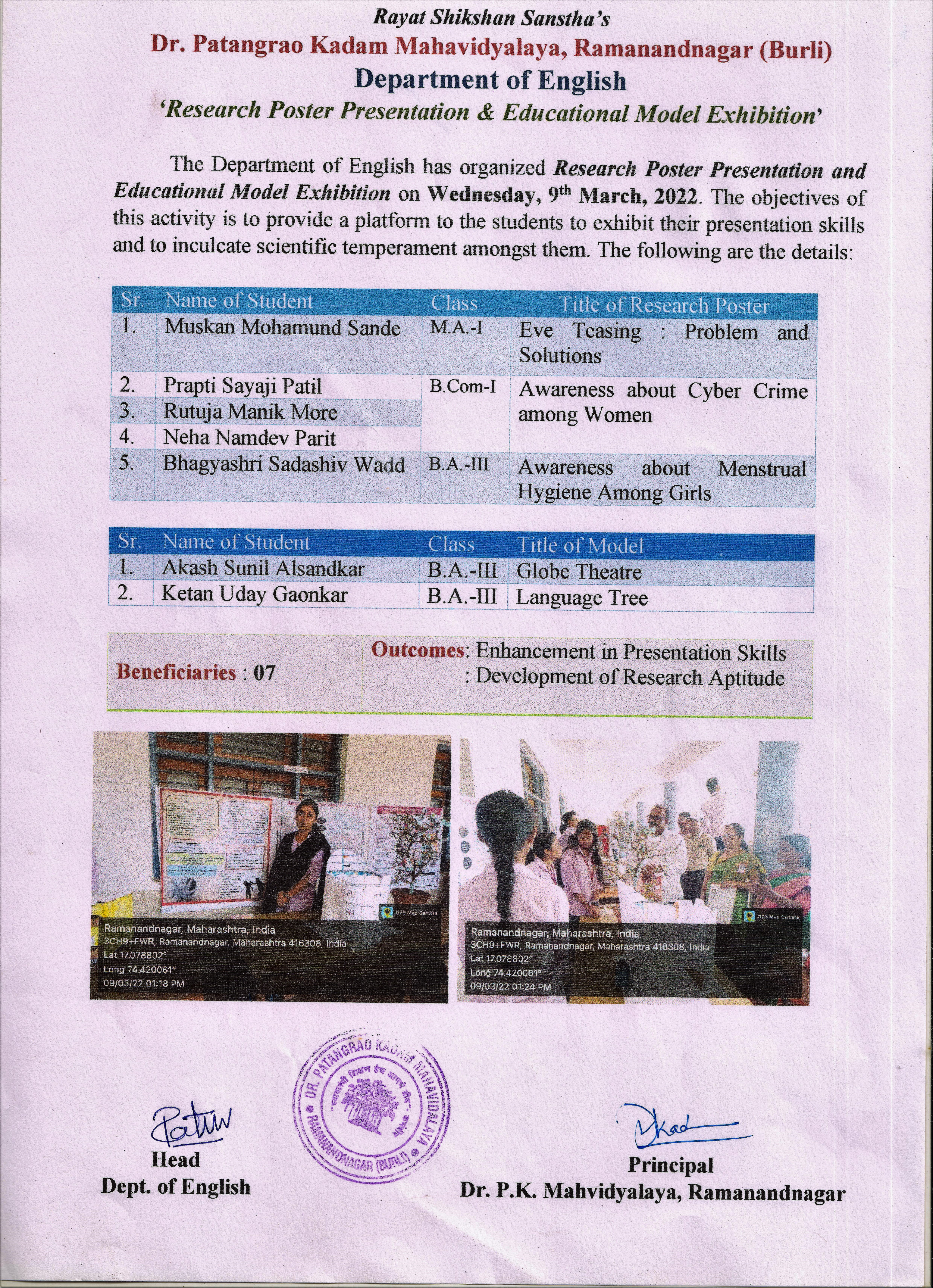 | 52 | 09/03/2022 | Research Poster Presentation and Educational Model Exhibition | View Report |