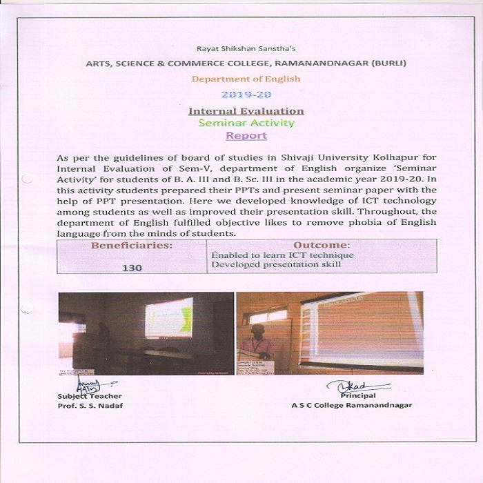 | 75 | 11/11/2019 | Internal Evalution Seminar Activity | View Report |