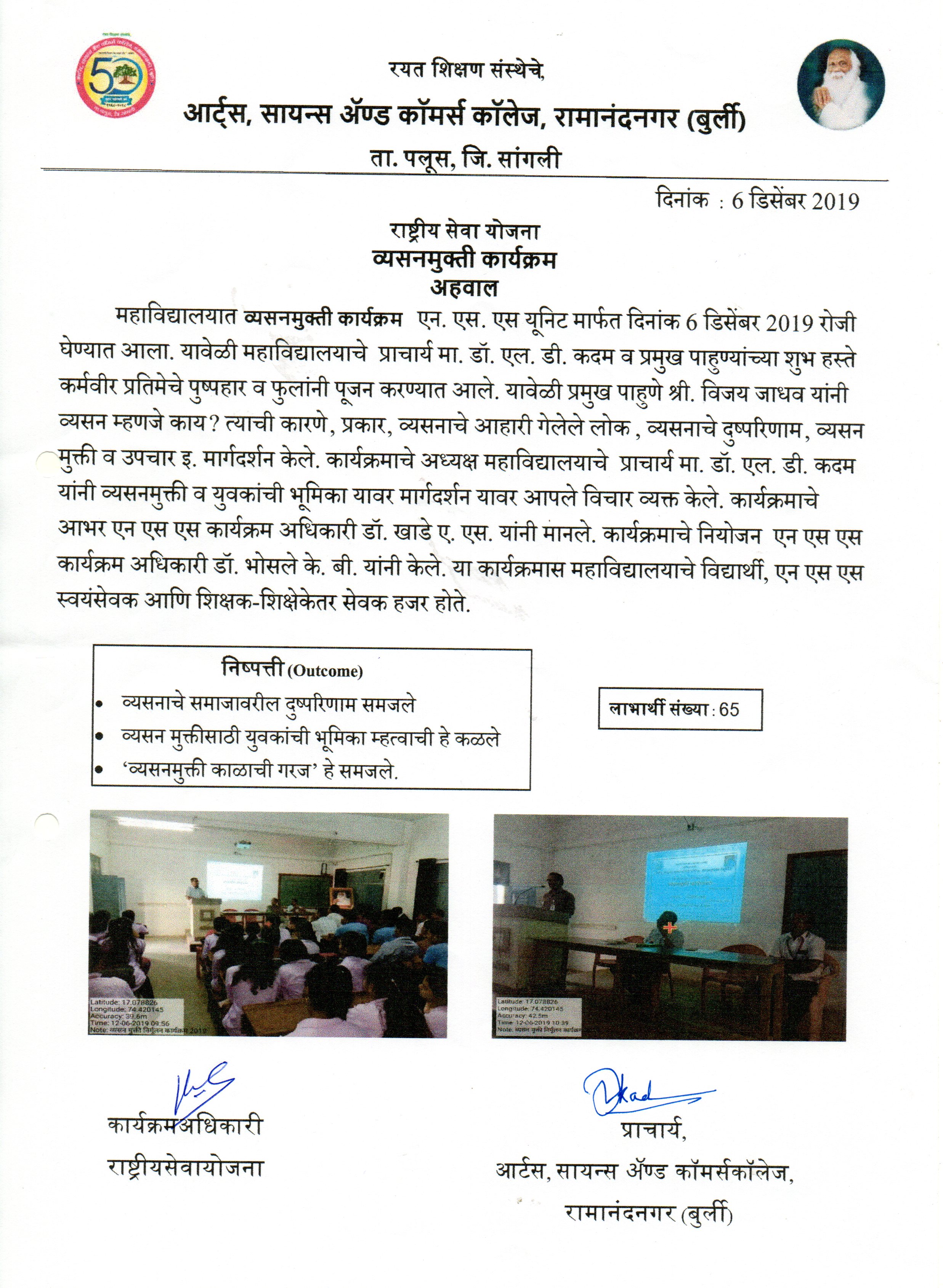 | 72 | 06/12/2019 | NSS | Vesanmukti Karyashala | View |